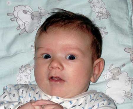 Babyen var meget livlig! Den suttede både tommelfinger, strakte benene og vendte sig